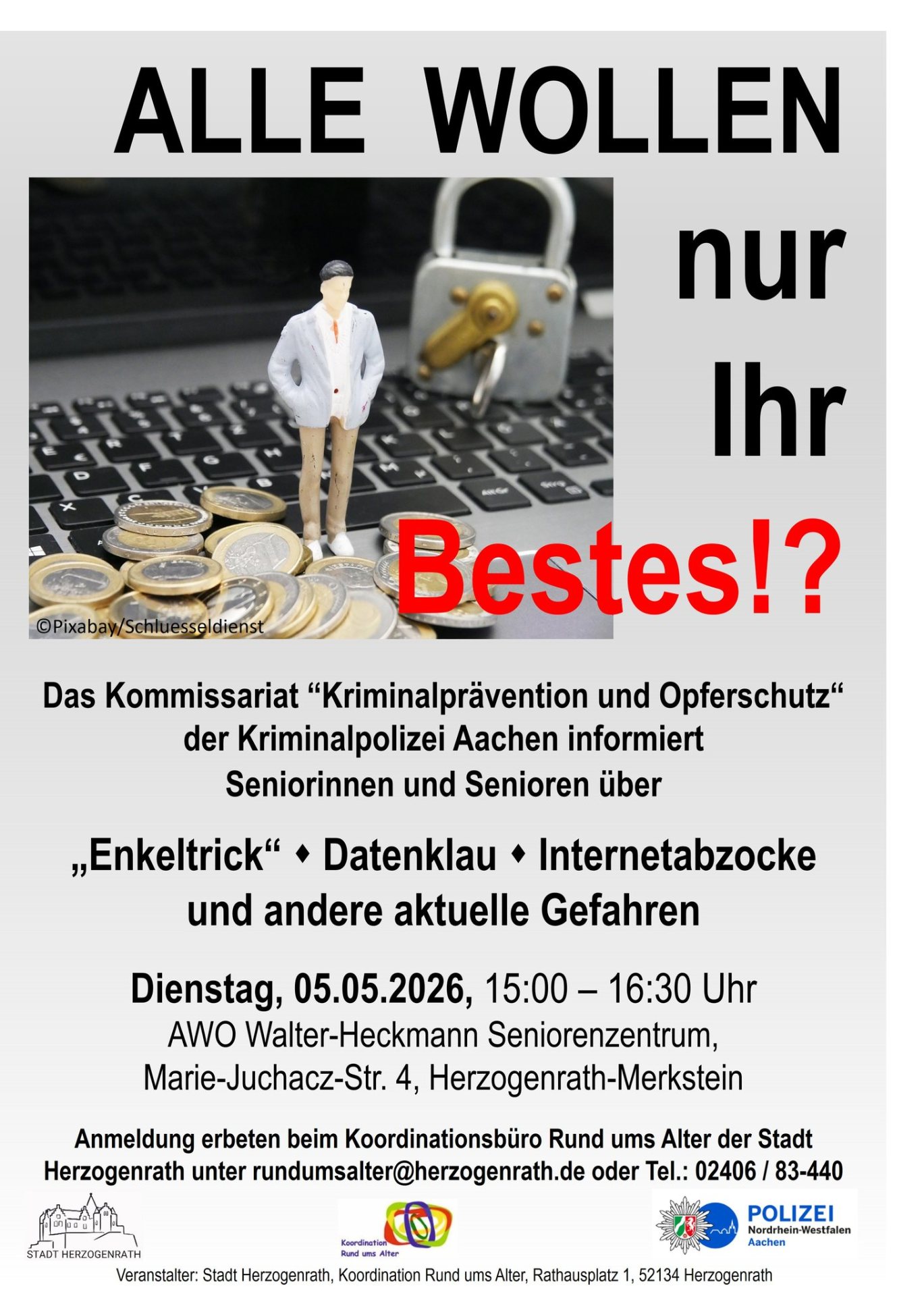 Wenn Sie publikumswirksame Veranstaltungen in Herzogenrath in den Kalender eintragen lassen möchten, senden Sie Infos bitte an: veranstaltungen[at]herzogenrath.de