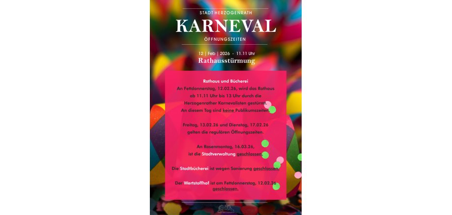 Die Karnevalstage haben aber auch Auswirkungen auf die Öffnungszeiten der Herzogenrather Stadtverwaltung.