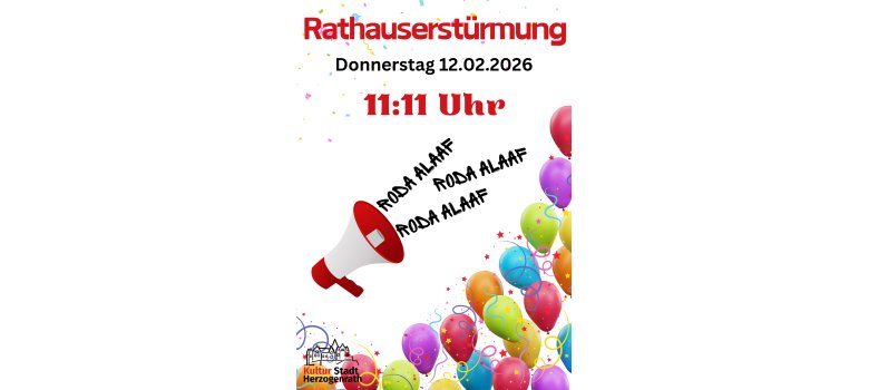 Die närrische Zeit rückt näher – und auch in diesem Jahr macht das bunte Karnevalstreiben vor dem Herzogenrather Rathaus und weiteren städtischen Einrichtungen nicht Halt. Am 12. Februar, dem Fettdonnerstag, steht alles im Zeichen des traditionellen Rathaussturms. Punkt 11.11 Uhr werden die Tollitäten aus dem gesamten Rodaland mit vereinten Kräften das Rathaus erobern und symbolisch die Herrschaft über die Stadt übernehmen.